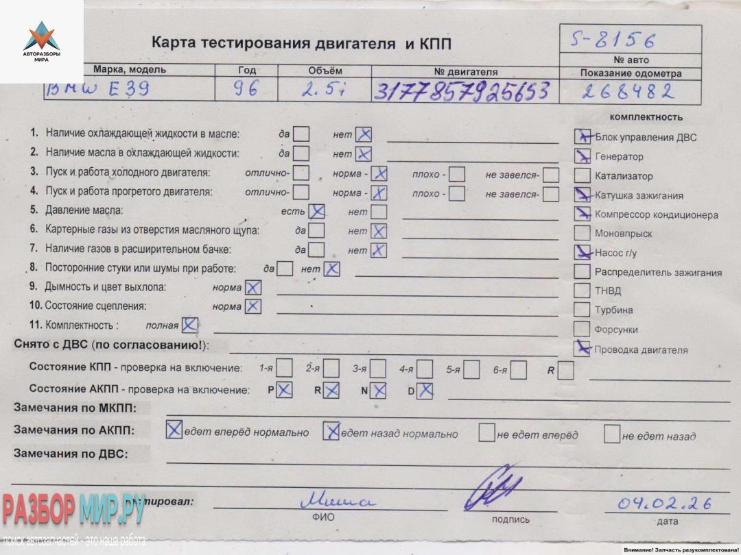 | Номер запчасти | 256S3, M52B25 |