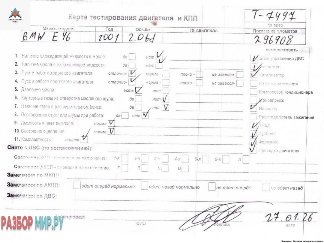 | Номер запчасти | 204D4, M47TUD20 |