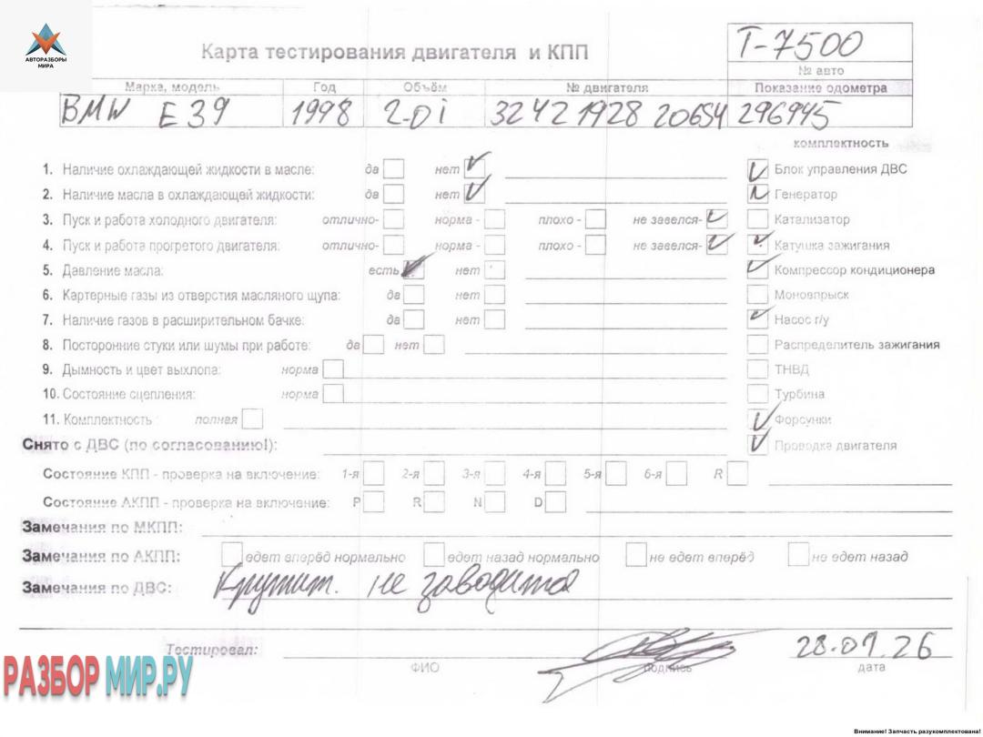 | Номер запчасти | 206S4, M52TUB20 |