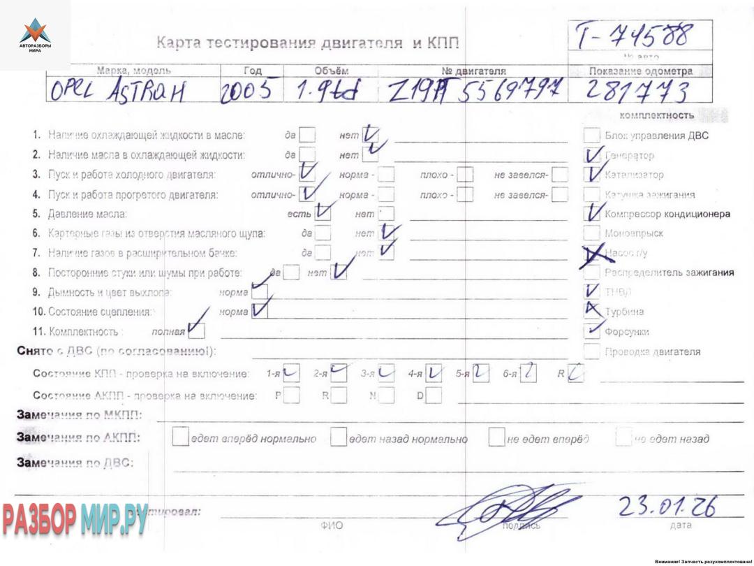 Z19DT 5569797 (цена без навесного), Внимание! Запчасть разукомплектована. Сняты запчасти: КПП 6-ст. механическая, Стартер
