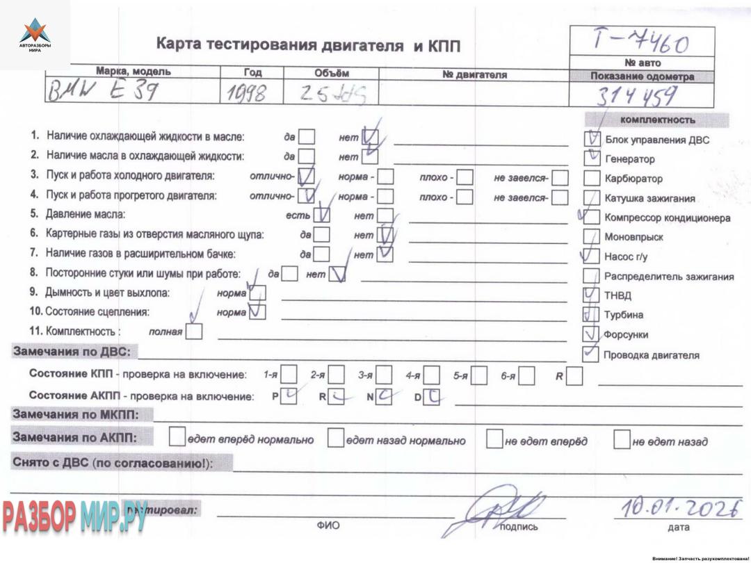 Б/Н (без навесного), Внимание! Запчасть разукомплектована. Сняты запчасти: Трос кулисы КПП, Генератор, Шкив коленвала, Компрессор кондиционера, Насос гидроусилителя руля, Кронштейн двигателя опорный, Насос вакуумный, Механизм натяжения ремня, цепи, Маховик, Корпус масляного фильтра, ТНВД, Кронштейн гидроусилителя, Клапан EGR (рециркуляции выхлопных газов), Расходомер (измеритель потока воздуха), Турбина, Клапан управления турбиной (актуатор), Блок управления двигателем (ДВС), Форсунка топливная, Патрубок ин