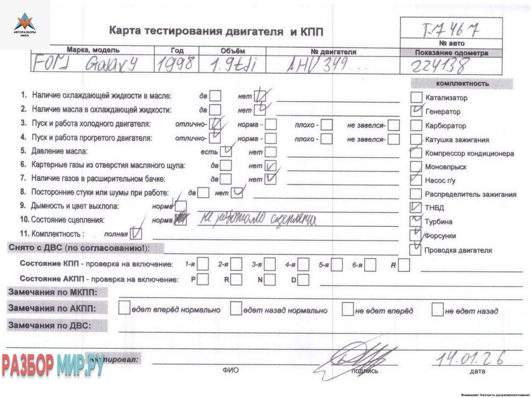 AHU 349... (цена со всем отавшимся навесным), Внимание! Запчасть разукомплектована. Сняты запчасти: КПП 5-ст. механическая, Стартер, Генератор, Компрессор кондиционера, Маховик, Насос гидроусилителя руля