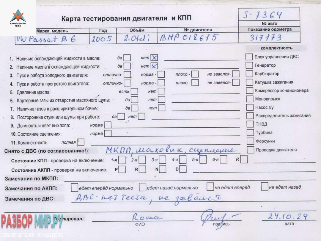 Двигатель (ДВС) на разборку Volkswagen Passat B6 2005