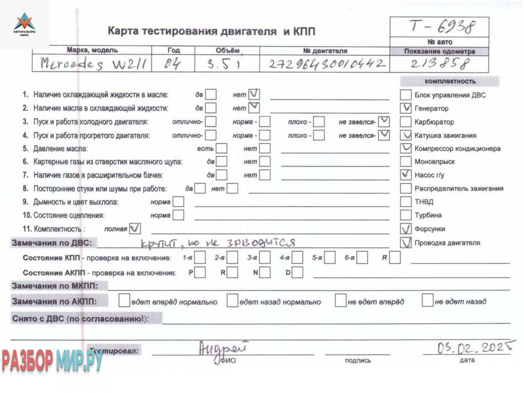 Двигатель (ДВС) на разборку Mercedes-Benz E-Класс W211/S211 2004