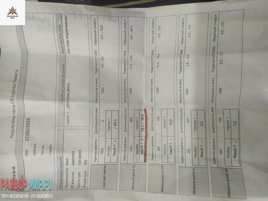 | Номер запчасти | 0445110104, 6280700487 |